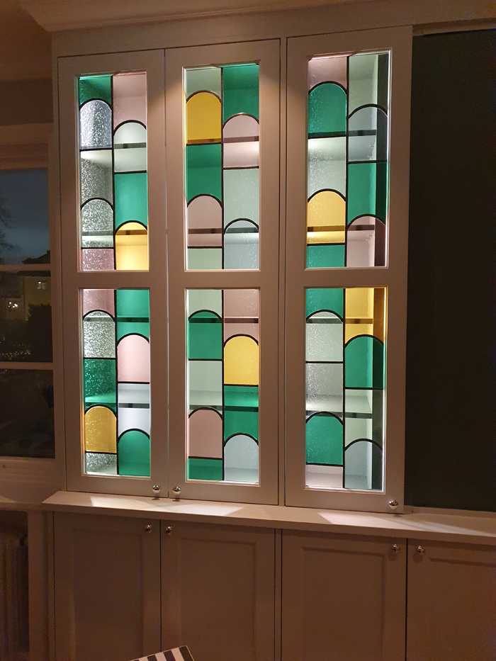 Två stycken dörrfönster till Refinedesignstudio Blyinfattat glas till en köksskåpslucka och ett fönster till ett hus byggt 1909